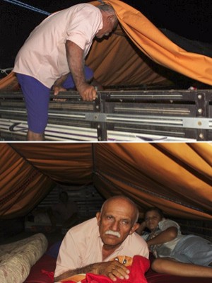 Para abrigar a família durante a noite, o agricultor improvisou uma